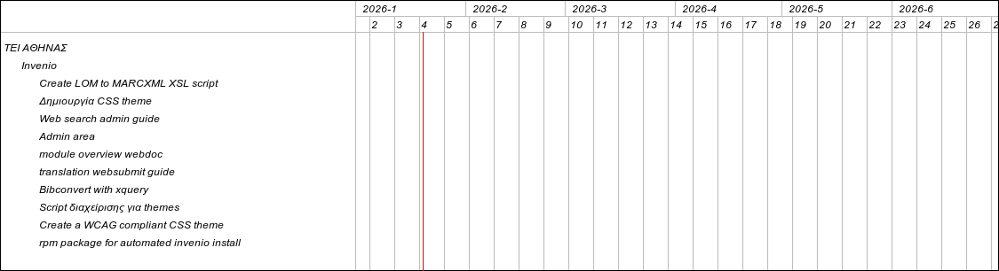 Λειτουργικότητα #462: Create LOM to MARCXML XSL script Λειτουργικότητα #463: Δημιουργία CSS theme Λειτουργικότητα #464: Web search admin guide Λειτουργικότητα #465: Admin area Λειτουργικότητα #466: module overview webdoc Λειτουργικότητα #467: translation websubmit guide Λειτουργικότητα #468: Bibconvert with xquery Λειτουργικότητα #469: Script διαχείρισης για themes Λειτουργικότητα #470: Create a WCAG compliant CSS theme Λειτουργικότητα #471: rpm package for automated invenio install